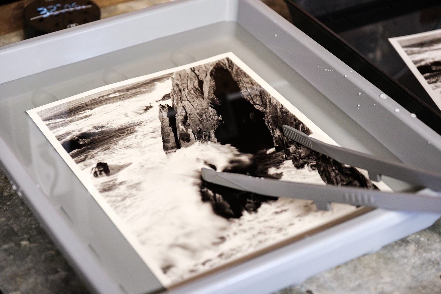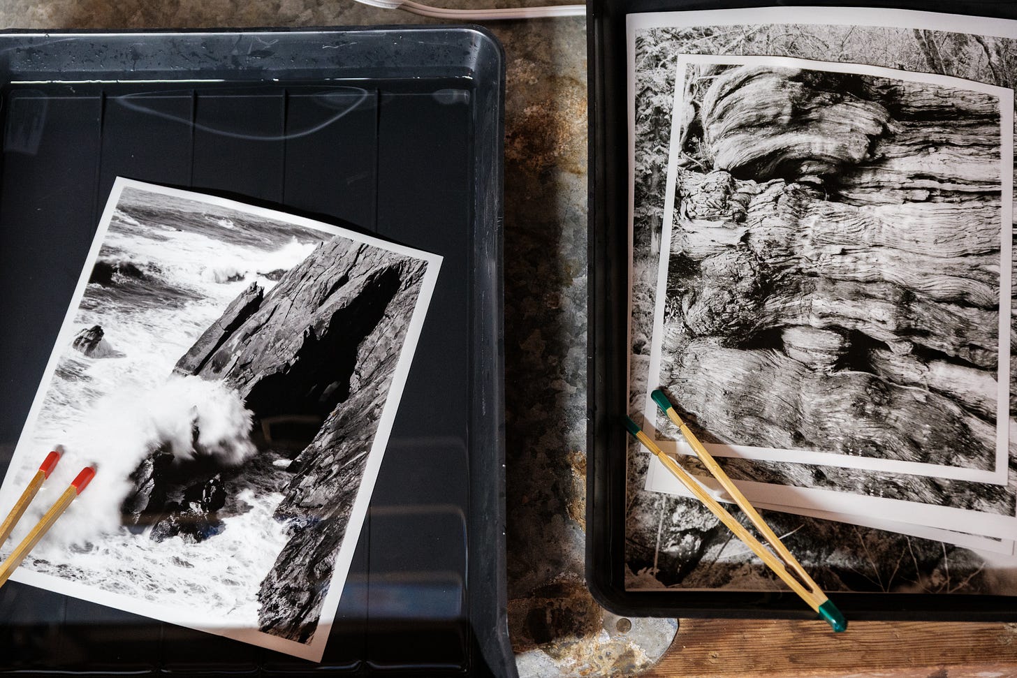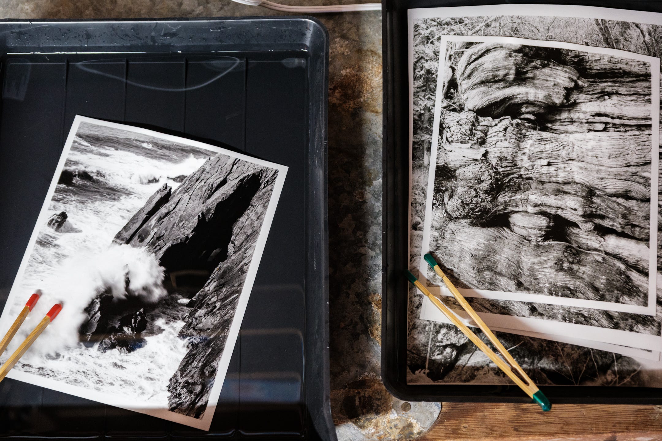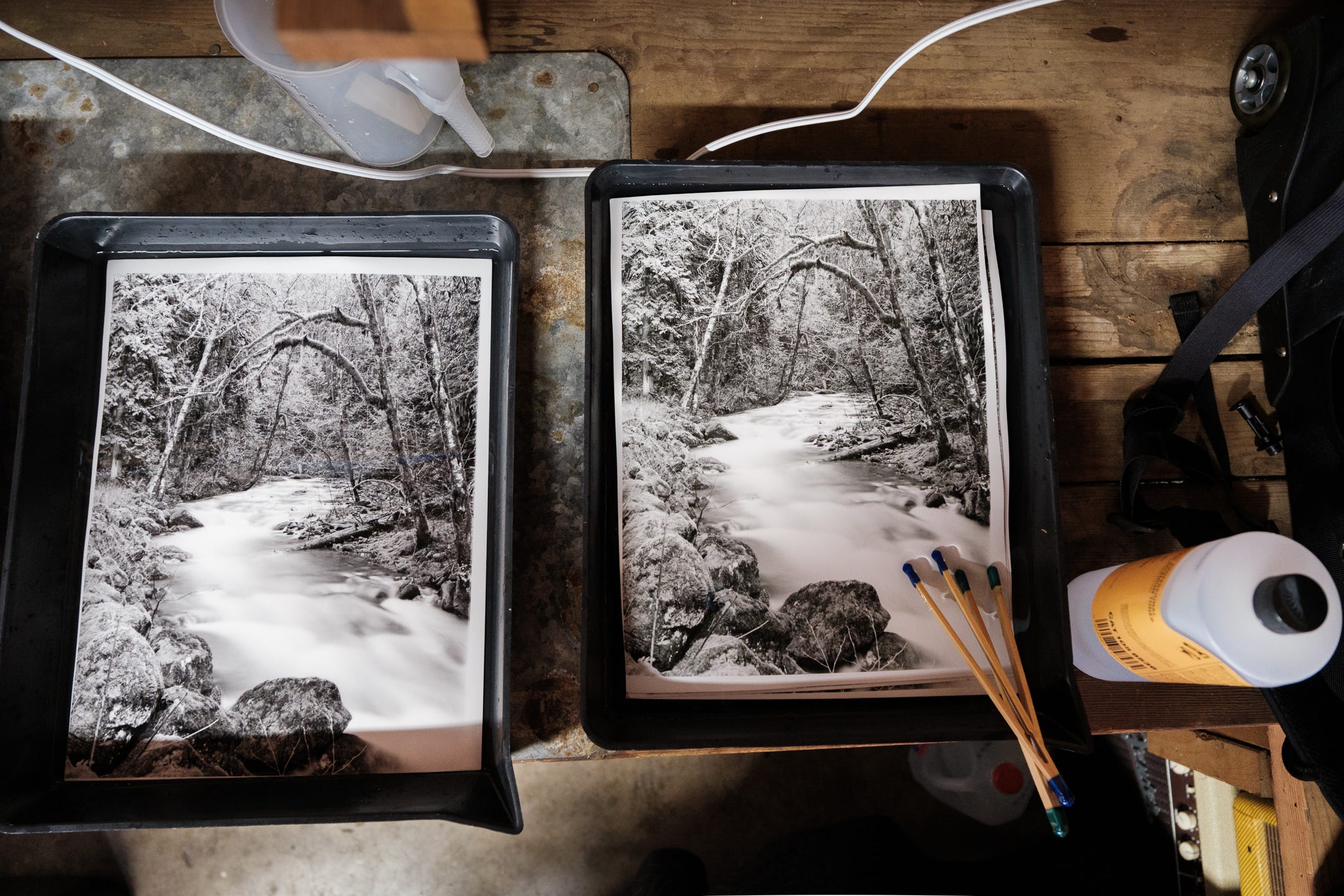In a few of these shots with the water tray of untoned prints next to the selenium tray, you can really see some difference. On this 11x14 print it felt incredibly clear what was happening, and I really love it.